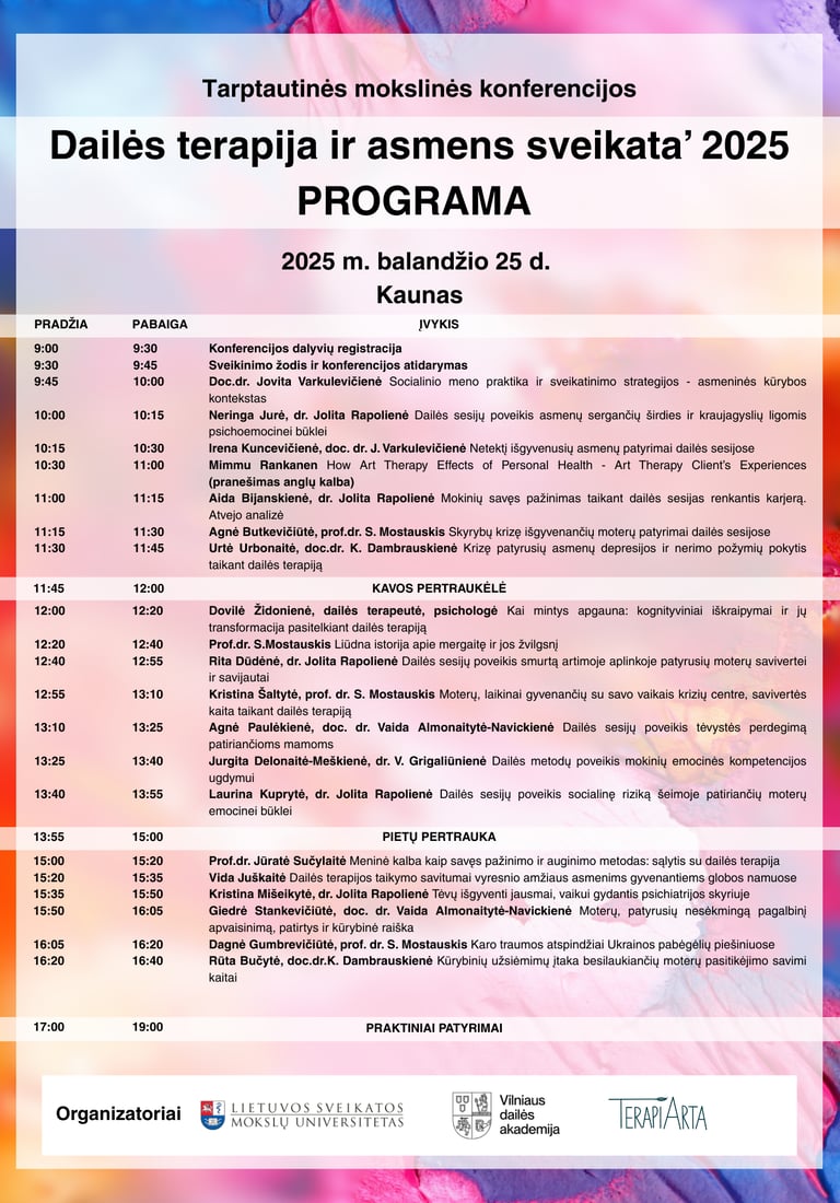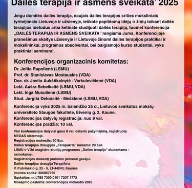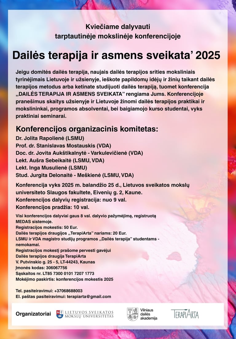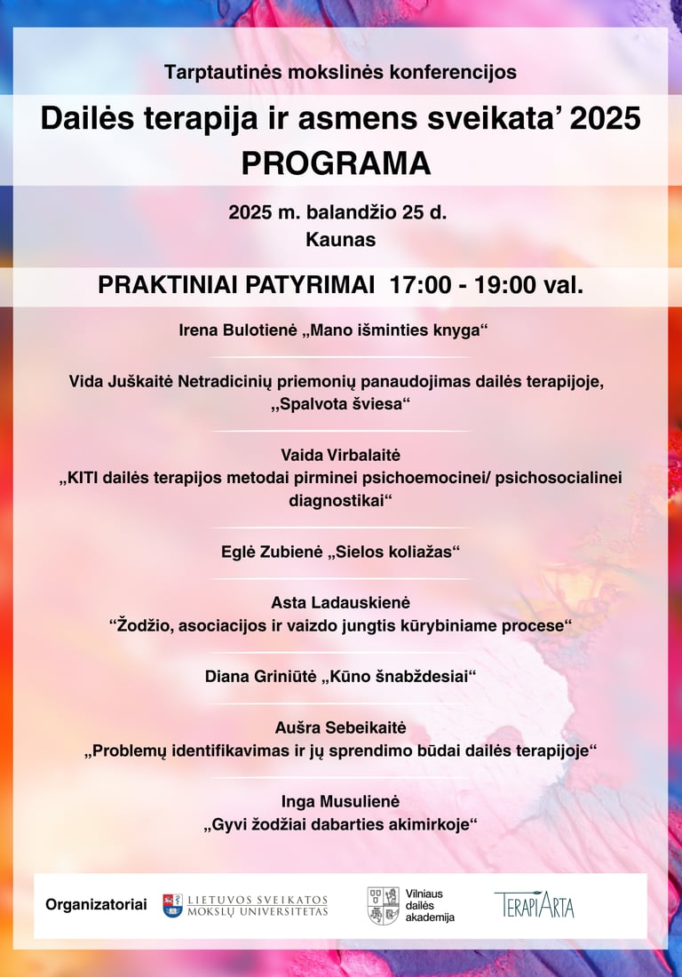 Kviečiame dalyvauti tarptautinėje mokslinėje konferencijoje „Dailės terapija ir asmens sveikata 2025“